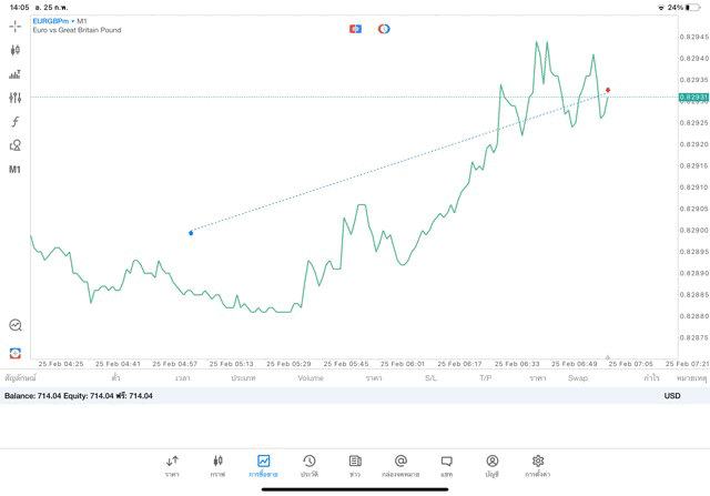 การเทรด Forex EURGBPm บนแอพเล่นหุ้น mt5 เริ่มขึ้นแล้ว ติดลบก่อน เมื่อเริ่มต้นเทรด รอเวลาผ่านไป หลังจากนี้นักลงทุนอาจจะ ได้กำไร หรือ ขาดทุน จากการเทรด forex EURGBPm