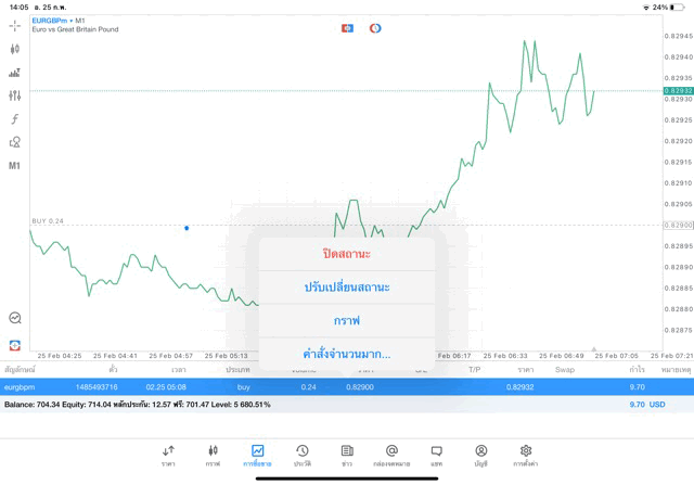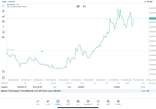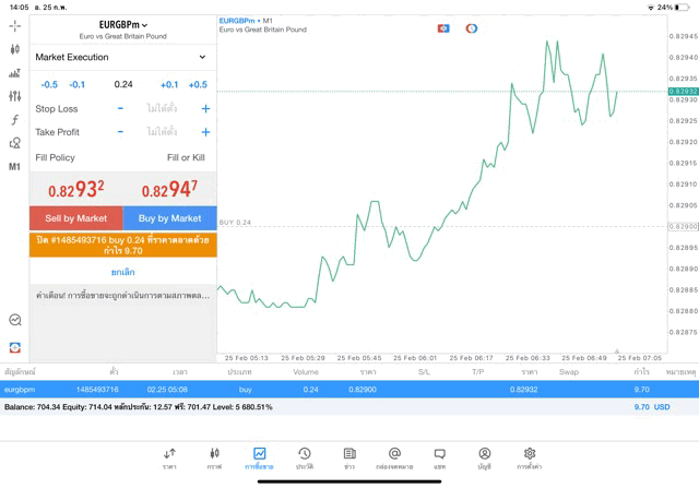 การเทรด Forex EURGBPm 0.24 lot