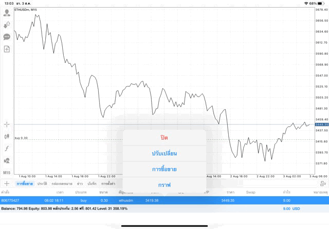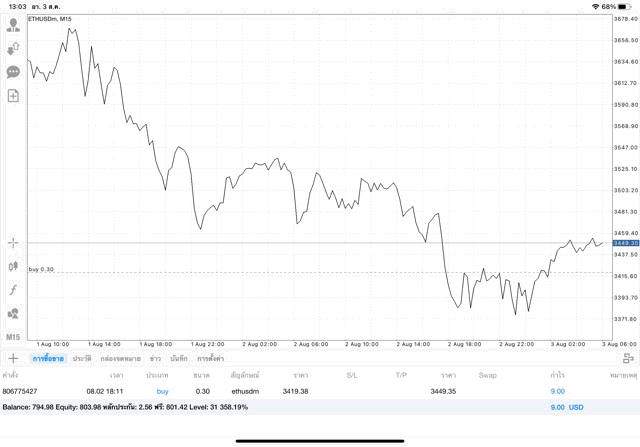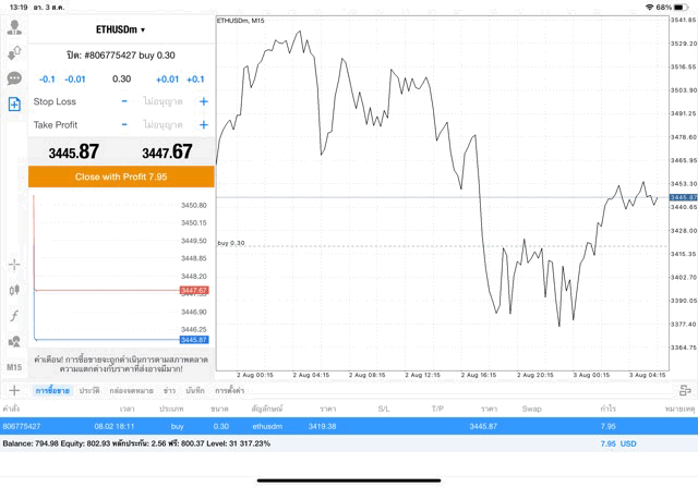 การเทรด Crypto ETHUSDm 0.3 lot แอพ MT4