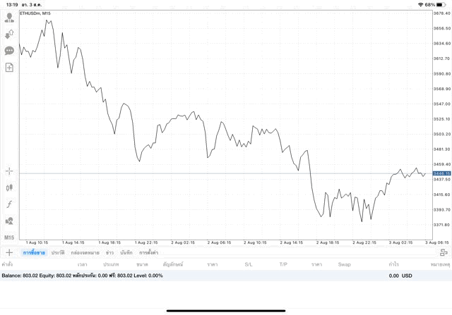 การเทรด Crypto ETHUSDm บนแอพเล่นหุ้น MT5 เริ่มขึ้นแล้ว